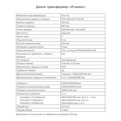 Диван-трансформер Италмас (Аквилон) продается в интернет-магазине mebel-online-bijsk.ru по цене 73 376 руб. Есть доставка по Бийску и Алтайскому краю. Возможность подъема на этаж и сборки уточняйте у менеджера по телефону 8(800)505-27-11.