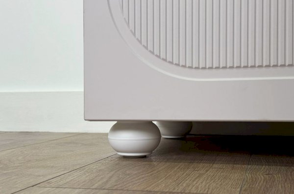 Корпус комода выполнен из ЛДСП толщиной 16 мм, фасады изготовлены из МДФ в плёнке ПВХ. Фасады с фрезеровкой подчёркивают аккуратный внешний вид изделия. Оригинальные круглые ручки и опоры придают комоду современный и лёгкий характер, делая его гармоничной частью детского интерьера.
